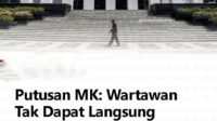 Putusan Mahkamah Konstitusi Wartawan Tidak Dapat Langsung Dituntut Pidana Karena Kerja Jurnalistiknya