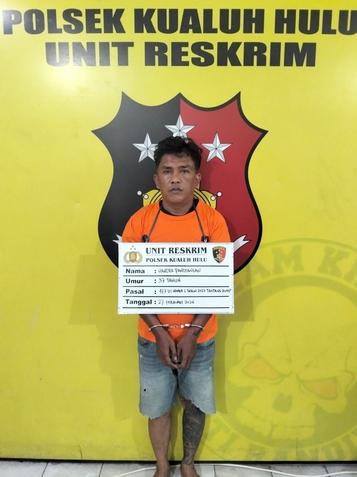 Pada hari Hari Jumat tanggal 27 Januari 2026 sekira pukul.11.25 Wib Polsek Kualuh Hulu mendapat laporan kejadian Tindak Pidana Pencurian dengan pemberatan tersebut, dan Atas Perintah Kapolsek Kualuh Hulu AKP CITRA YANI Br BARUS, SH, M.H. memerintahkan unit reskrim melakukan cek TKP yang dipimpin Kanit Reskrim IPDA RAMADHAN HILAL, S.E.,S.H, dan sesampainya di TKP tim melihat kerumunan masyarakat yang sudah mengamankan 1(satu) orang tersangka.